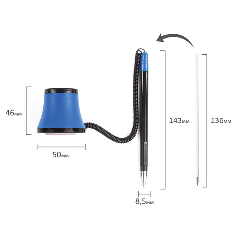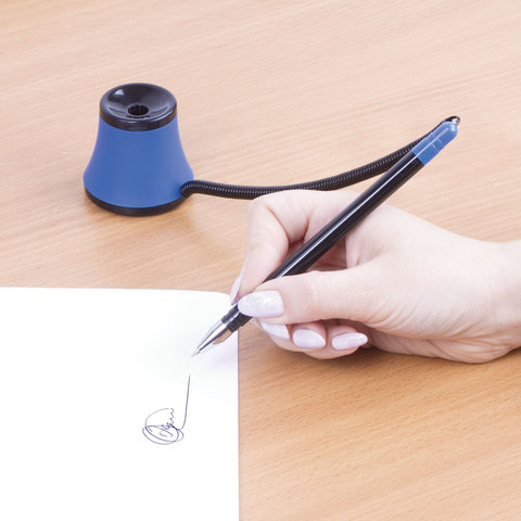 Ручка шариковая настольная масляная BRAUBERG "Стенд-Пен №1", СИНЯЯ, корпус черный/синий, линия письма 0,35 мм, 141884