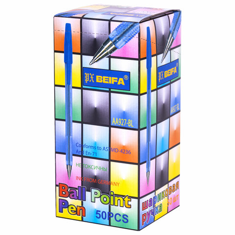 Ручка шариковая BEIFA (Бэйфа) 927, корпус тонированный синий, узел 0,7 мм, линия письма 0,5 мм, AA927-BL