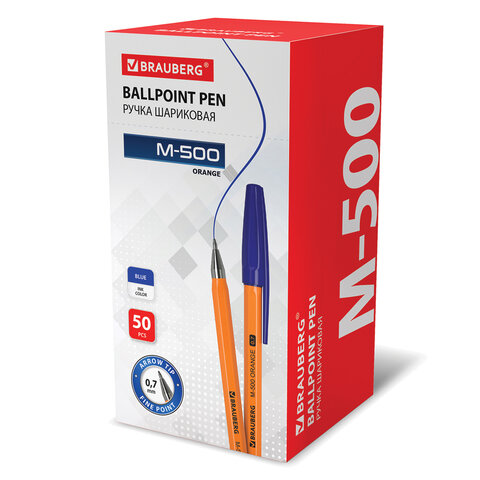Ручка шариковая BRAUBERG "M-500 ORANGE", СИНЯЯ, корпус оранжевый, узел 0,7 мм, линия письма 0,35 мм, 143448
