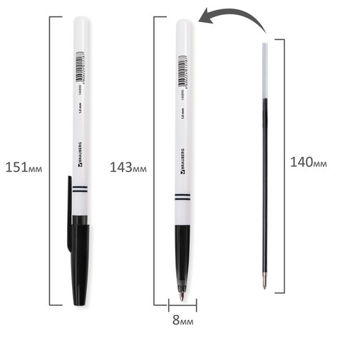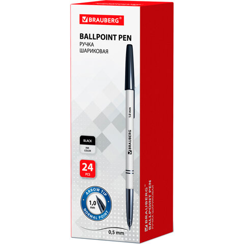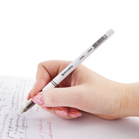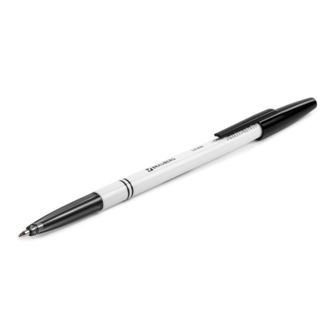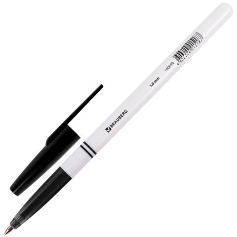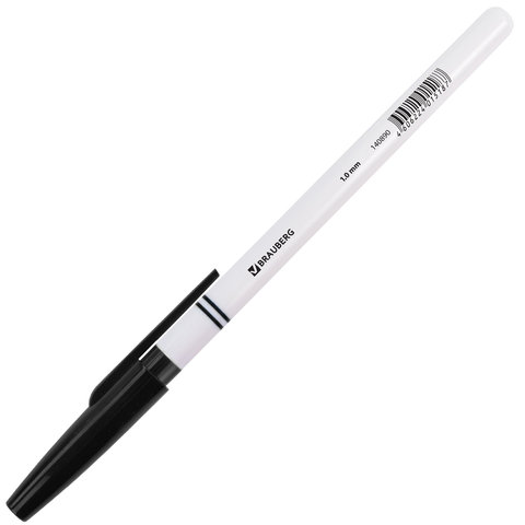 Ручка шариковая BRAUBERG "Офисная", ЧЕРНАЯ, корпус белый, узел 1 мм, линия письма 0,5 мм, 140890