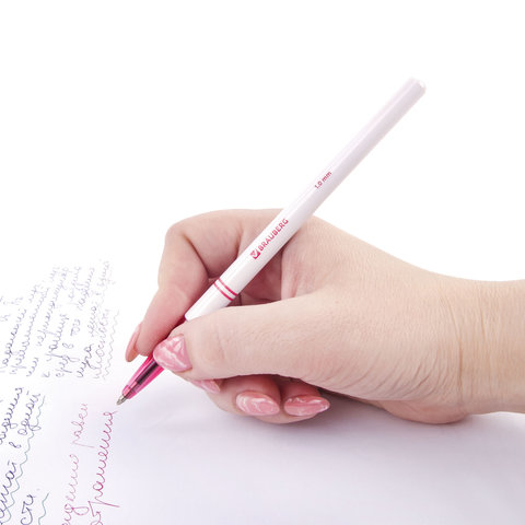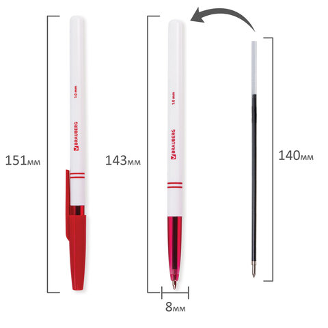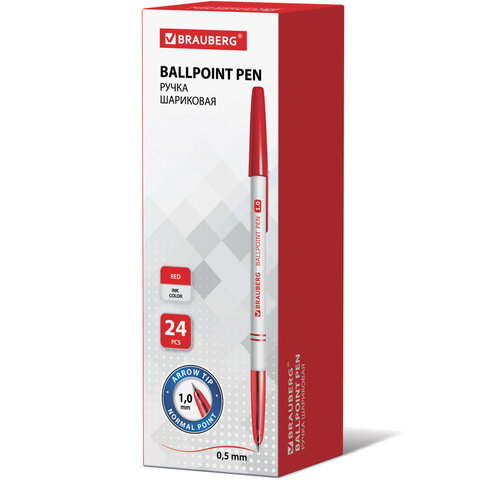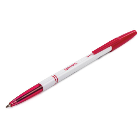 Ручка шариковая BRAUBERG "Офисная", КРАСНАЯ, корпус белый, узел 1 мм, линия письма 0,5 мм, 140892