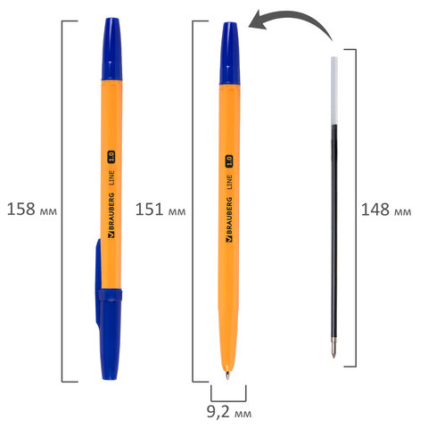 Шариковая ручка BRAUBERG "Line", ставшая классикой, с оранжевым корпусом. Благодаря увеличенной длине письма и чернилам DOKUMENTAL (Германия), эта ручка идеально подходит для повседневного письма и станет надежным помощником.