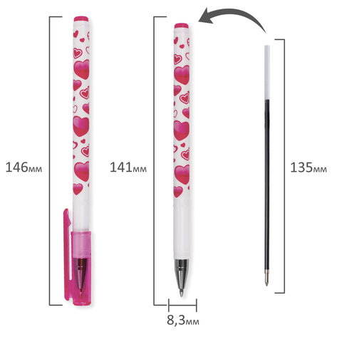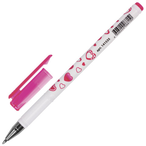 Ручка шариковая BRAUBERG "Сердечки", СИНЯЯ, корпус с печатью, узел 0,7 мм, линия письма 0,35 мм, 141535