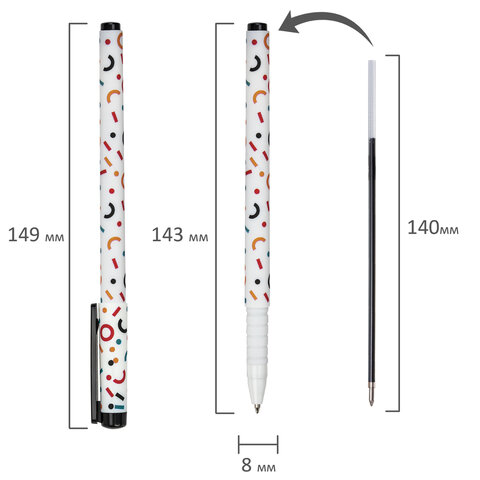 Шариковая ручка BRAUBERG SOFT TOUCH GRIP "CONFETTI" с мягким покрытием корпуса и оригинальным дизайном.