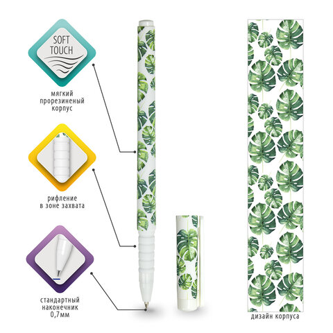 Шариковая ручка BRAUBERG SOFT TOUCH GRIP "TROPIC" с мягким покрытием корпуса и оригинальным дизайном.