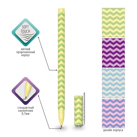 Шариковая ручка BRAUBERG SOFT TOUCH STICK "GEOMETRIC" с мягким покрытием корпуса и геометрическим рисунком.