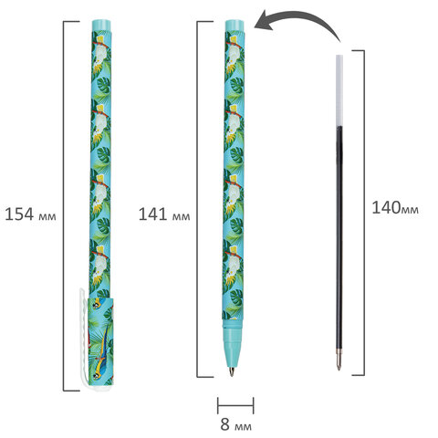 Ручка шариковая BRAUBERG SOFT TOUCH STICK "PARROTS", СИНЯЯ, мягкое покрытие, узел 0,7 мм, 143706