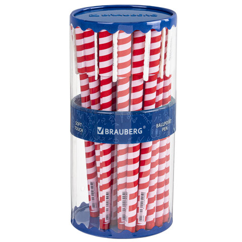 Шариковая ручка BRAUBERG SOFT TOUCH STICK "TWIST" с мягким покрытием корпуса и ярким полосатым рисунком.