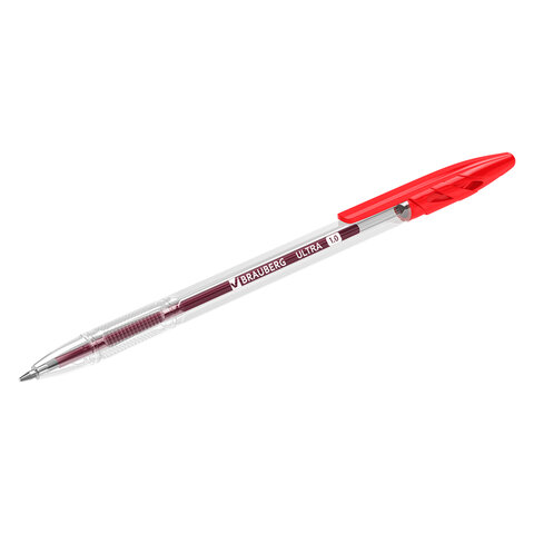 Ручка шариковая BRAUBERG "ULTRA", КРАСНАЯ, узел 1 мм, чернила ГЕРМАНИЯ, наконечник ШВЕЙЦАРИЯ, 143560