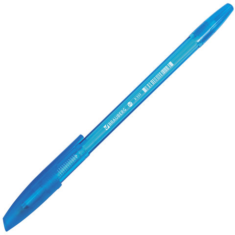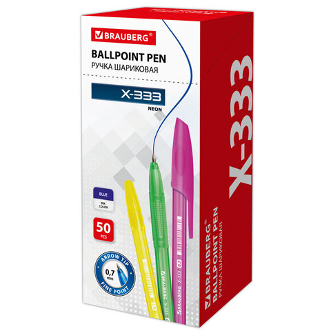 Ручка шариковая BRAUBERG "X-333" NEON, СИНЯЯ, корпус тонированный ассорти, узел 0,7 мм, линия письма 0,35 мм, 142829