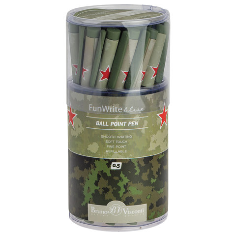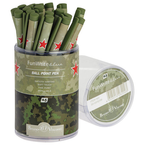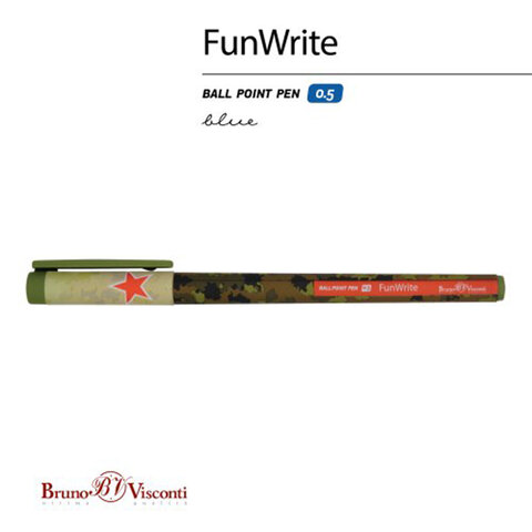 Ручка шариковая BRUNO VISCONTI "FunWrite", СИНЯЯ, "Милитари", узел 0,5 мм, линия письма 0,3 мм, 20-0212/06