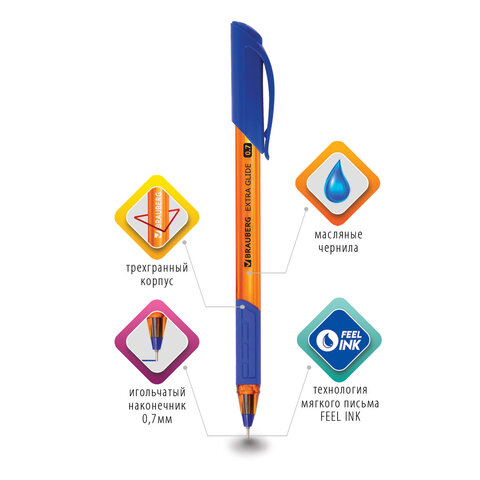 Ручка шариковая масляная BRAUBERG "Extra Glide GT Tone Orange", СИНЯЯ, узел 0,7 мм, линия письма 0,35 мм, 142923