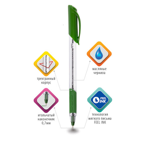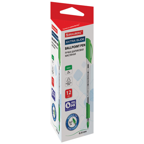 Ручка шариковая масляная BRAUBERG "Extra Glide GT", ЗЕЛЕНАЯ, трехгранная, узел 0,7 мм, линия письма 0,35 мм, 142921