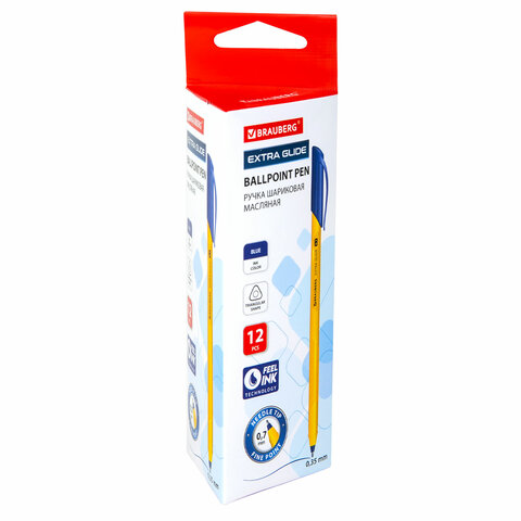 Ручка шариковая масляная BRAUBERG "Extra Glide Orange", СИНЯЯ, трехгранная, узел 0,7 мм, линия письма 0,35 мм, 142925