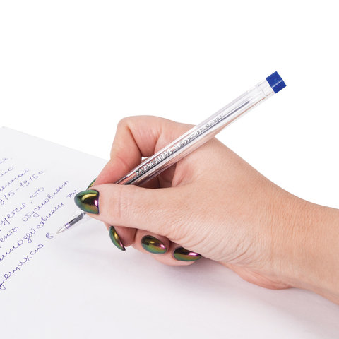 Ручка шариковая масляная BRAUBERG "Marine Classic", СИНЯЯ, трехгранная, корпус прозрачный, узел 0,7 мм, линия письма 0,5 мм, 141707
