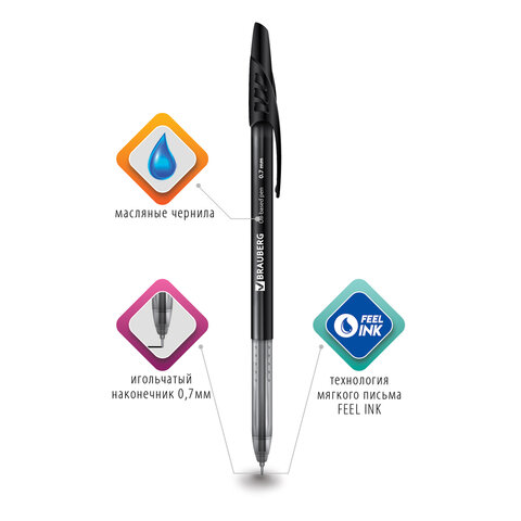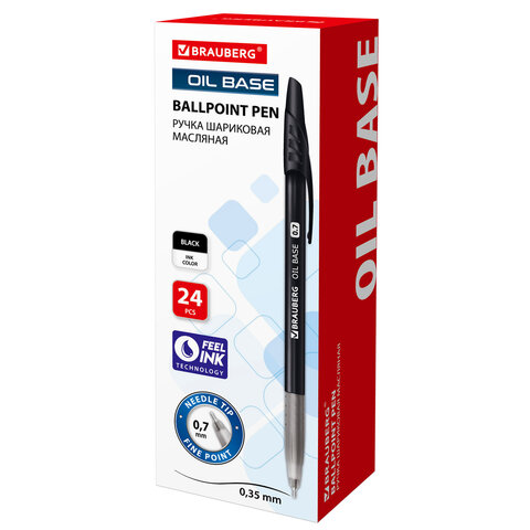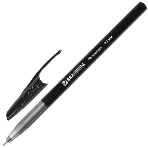 Ручка шариковая масляная BRAUBERG "Oil Base", ЧЕРНАЯ, корпус черный, узел 0,7 мм, линия письма 0,35 мм, 141635