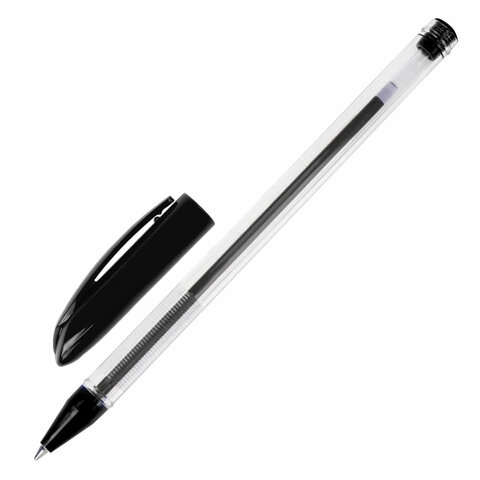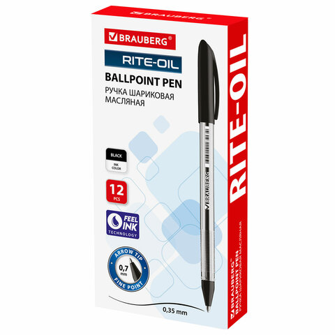Ручка шариковая масляная BRAUBERG "Rite-Oil", ЧЕРНАЯ, корпус прозрачный, узел 0,7 мм, линия письма 0,35 мм, 142147