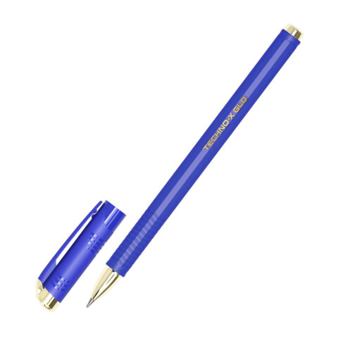 Ручка шариковая масляная BRAUBERG "Techno-X GLD", СИНЯЯ, корпус синий, золотистые детали, линия 0,5 мм, 144223