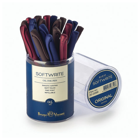 Ручка шариковая масляная BRUNO VISCONTI "SoftWrite", СИНЯЯ, корпус ассорти, узел 0,5 мм, линия письма 0,3 мм, 20-0088