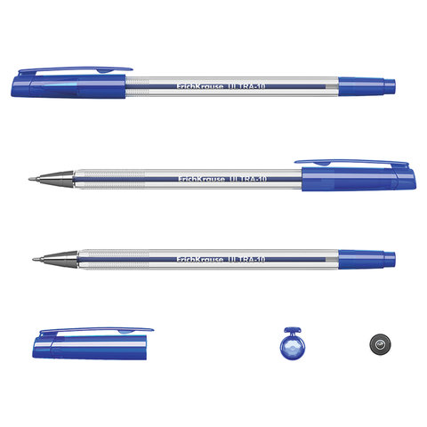 Ручка шариковая масляная ERICH KRAUSE "Ultra-10", СИНЯЯ, корпус прозрачный, узел 0,7 мм, линия письма 0,26 мм, 13873