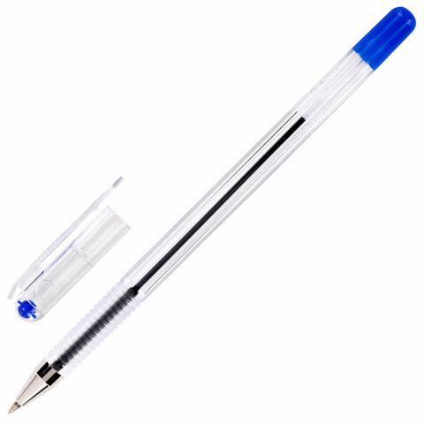 Ручка шариковая масляная MUNHWA "Option", СИНЯЯ, узел 0,5 мм, линия 0,3 мм, OP-02