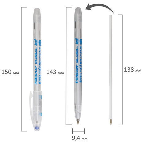 Шариковая ручка PENSAN "Global-21" с масляными чернилами в классическом круглом корпусе из прозрачного пластика.
