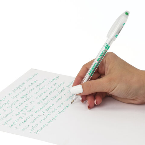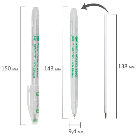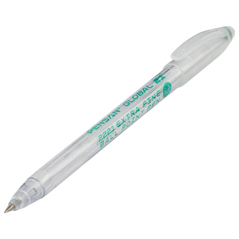 Ручка шариковая масляная PENSAN "Global-21", ЗЕЛЕНАЯ, корпус прозрачный, узел 0,5 мм, линия письма 0,3 мм, 2221, 2221/12