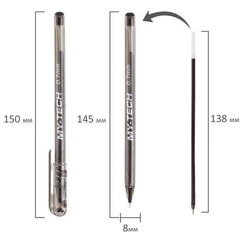 Ручка шариковая масляная PENSAN "My-Tech", ЧЕРНАЯ, игольчатый узел 0,7 мм, линия письма 0,35 мм, 2240/25