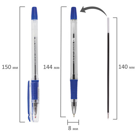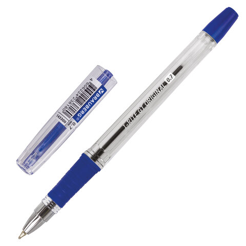 Ручка шариковая масляная с грипом BRAUBERG "i-Rite GT", СИНЯЯ, корпус прозрачный, узел 0,7 мм, 143300