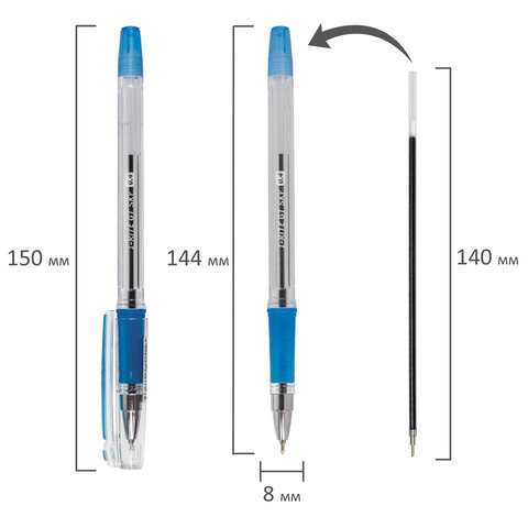 Ручка шариковая масляная с грипом BRAUBERG "i-Rite GT SKY", СИНЯЯ, голубые детали, узел 0,4 мм, 143299