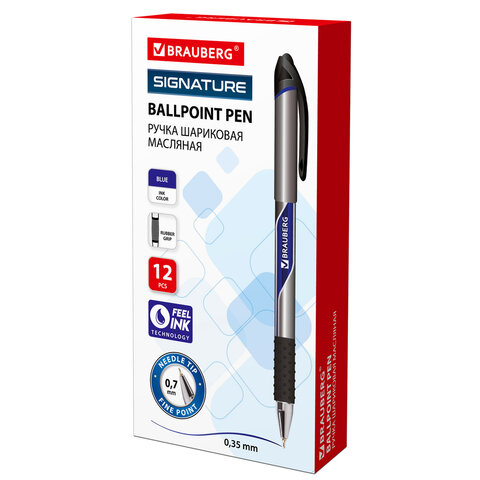 Ручка шариковая масляная с грипом BRAUBERG "Signature", СИНЯЯ, печать, узел 0,7 мм, линия письма 0,35 мм, 142688
