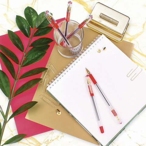 Ручка шариковая масляная с грипом MUNHWA "MC Gold", КРАСНАЯ, корпус прозрачный, узел 0,5 мм, линия письма 0,3 мм, BMC-03