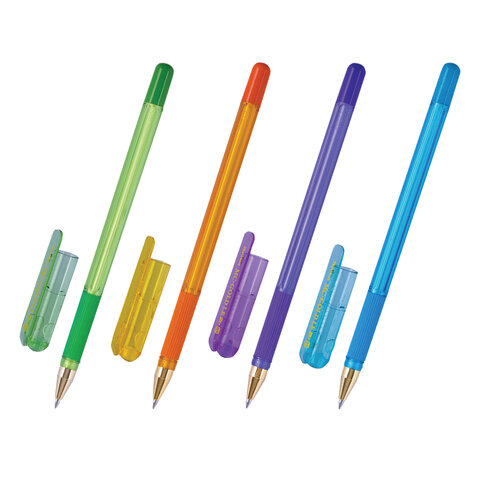 Классический корпус с мягкой резиновой грип-зоной. Стабильная яркая непрерывная линия письма. В ассортименте 4 цвета корпуса: голубой, зеленый, оранжевый и фиолетовый