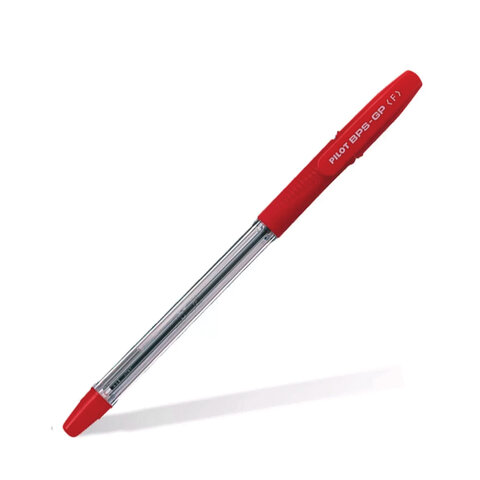Ручка шариковая масляная с грипом PILOT "BPS-GP", КРАСНАЯ, корпус прозрачный, узел 0,7 мм, линия письма 0,22 мм, BPS-GP-F