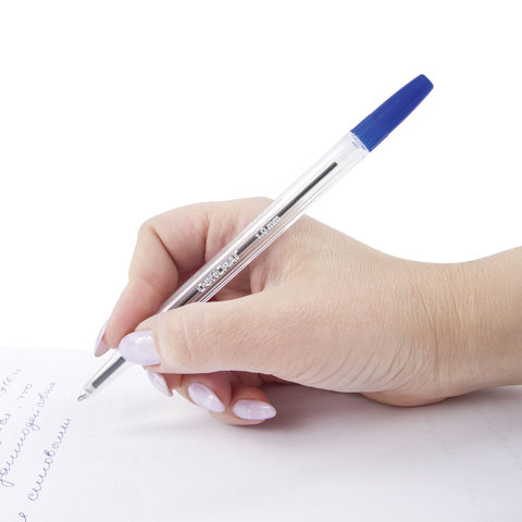 Ручка шариковая ОФИСМАГ "Line", СИНЯЯ, корпус прозрачный, узел 1 мм, линия письма 0,5 мм, 141878
