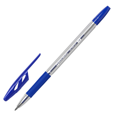 Ручка шариковая с грипом BRAUBERG "ULTRA GT", СИНЯЯ, корпус прозрачный, линия 0,5 мм, 144051