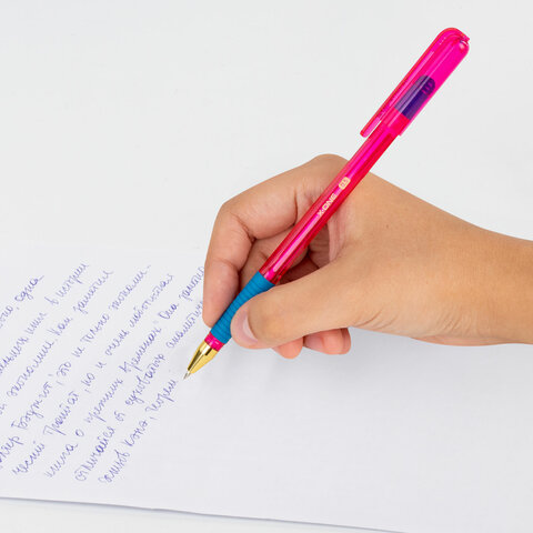Ручка шариковая с грипом BRAUBERG "X-ONE NEON", СИНЯЯ, корпус ассорти, узел 0,5 мм, линия письма 0,35 мм, 143987