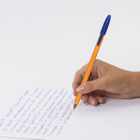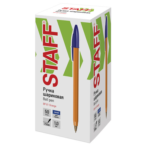 Ручка шариковая STAFF "Basic Orange BP-01", письмо 750 метров, СИНЯЯ, длина корпуса 14 см, узел 1 мм, 143740