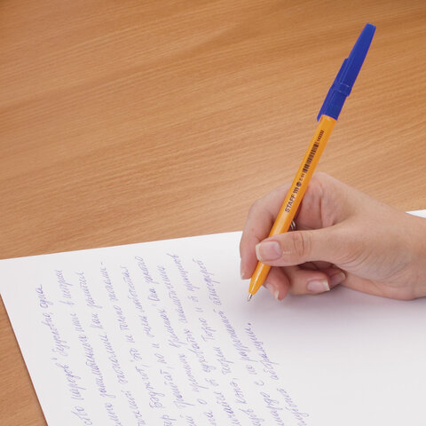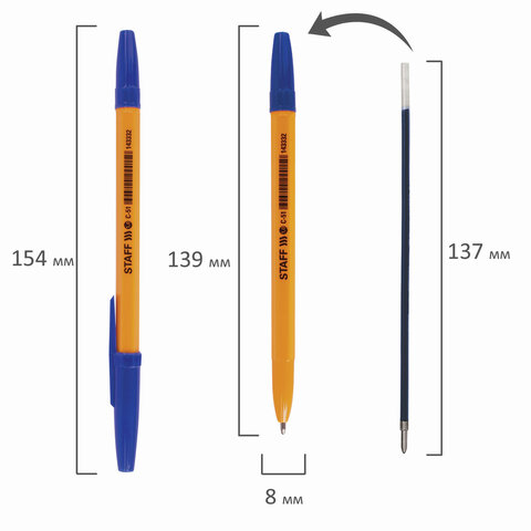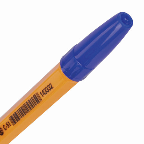 Ручка шариковая STAFF "C-51", СИНЯЯ, корпус оранжевый, узел 1 мм, линия письма 0,5 мм, 143332