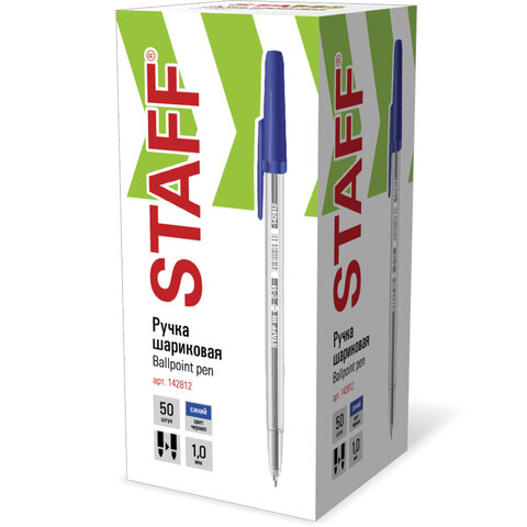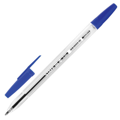 Ручка шариковая STAFF "C-51", СИНЯЯ, корпус прозрачный, узел 1 мм, линия письма 0,7 мм, 142812