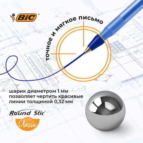 Одноразовые шариковые ручки BIC "Round Stic" - идеальный вариант для тех, кто много пишет.