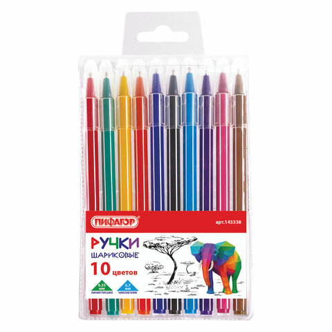 Ручки шариковые ПИФАГОР "Веселые зверята", НАБОР 10 шт., АССОРТИ, узел 0,7 мм, линия письма 0,35 мм, 143338, BP252
