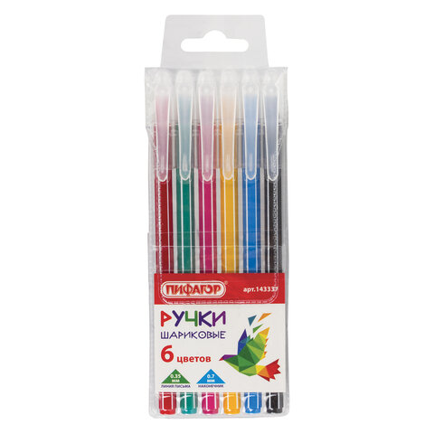 Ручки шариковые ПИФАГОР "Веселые зверята", НАБОР 6 шт., АССОРТИ, узел 0,7 мм, линия письма 0,35 мм, 143337, BP251