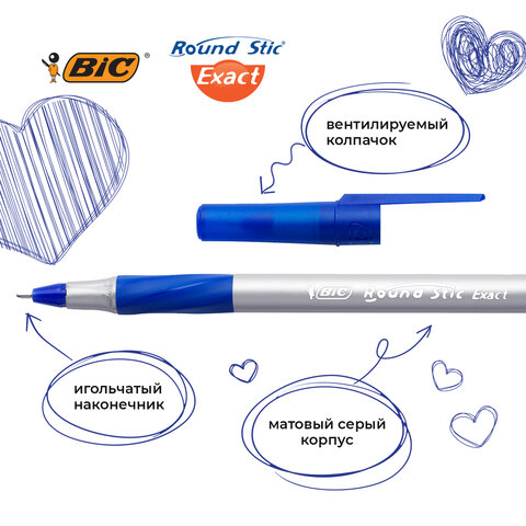 Одноразовые шариковые ручки BIC "Round Stic Exact" - идеальный вариант для тех, кто много пишет.