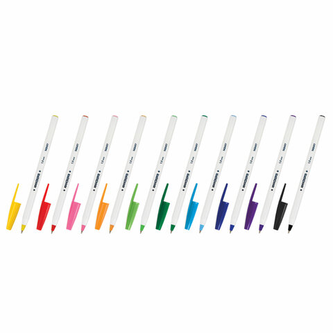 Ручки шариковые ЮНЛАНДИЯ "РАДУГА", НАБОР 10 цветов, длина письма 2000 м, узел 1 мм, линия письма 0,5 мм, 143497