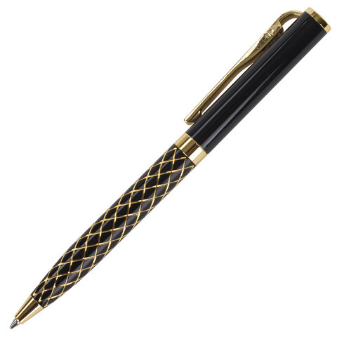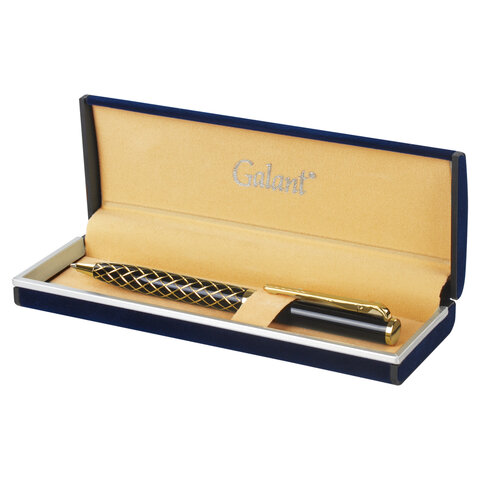 Ручка подарочная шариковая GALANT "Klondike", корпус черный с золотистым, золотистые детали, пишущий узел 0,7 мм, синяя, 141357