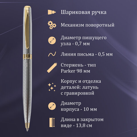Ручка шариковая GALANT "Marburg", корпус серебристый, ежедневник недатированный А5 черный, пакет, 880905