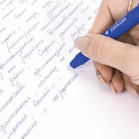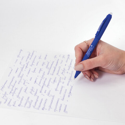 Ручка стираемая гелевая с грипом BRAUBERG "SOFT&SILK", СИНЯЯ, узел 0,7 мм, линия письма 0,5 мм, 143253