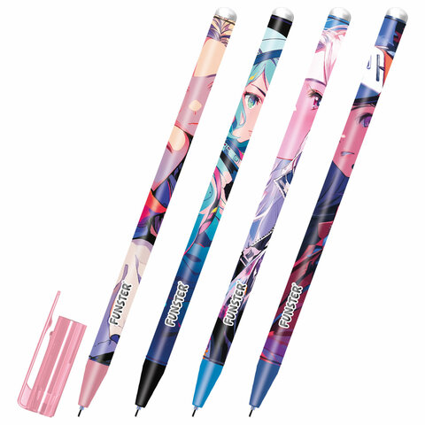 Ручка стираемая гелевая с принтом FUNSTER (ФАНСТЕР) "ANIME", СИНЯЯ, корпус ассорти, игольчатый наконечник 0,5 мм, линия 0,35 мм, 144412