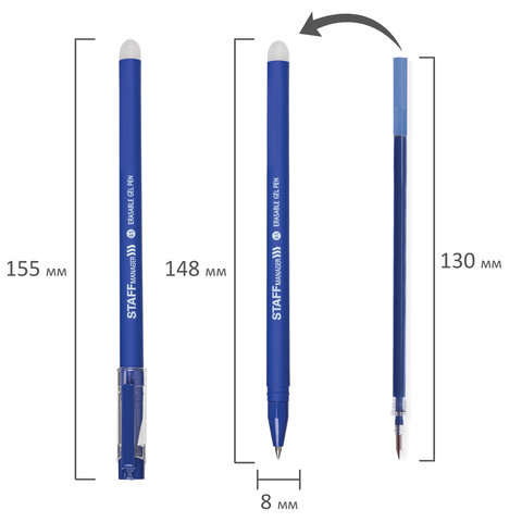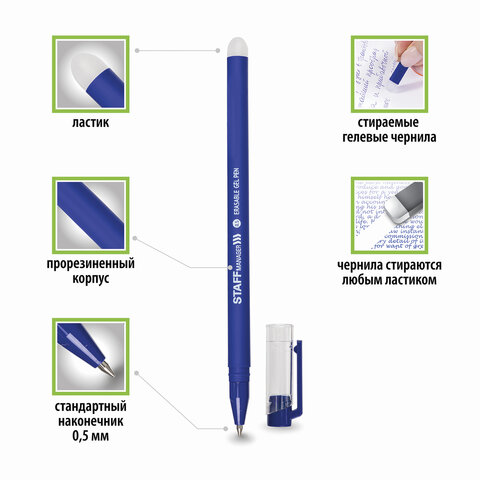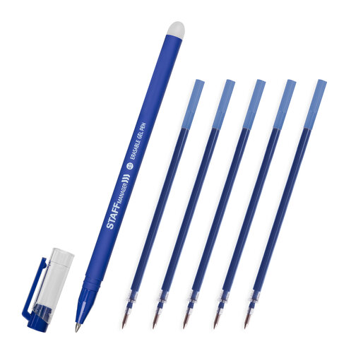 Ручка стираемая гелевая STAFF "Manager" EGP-656, СИНЯЯ, + 5 сменных стержней, линия письма 0,35 мм, 143657